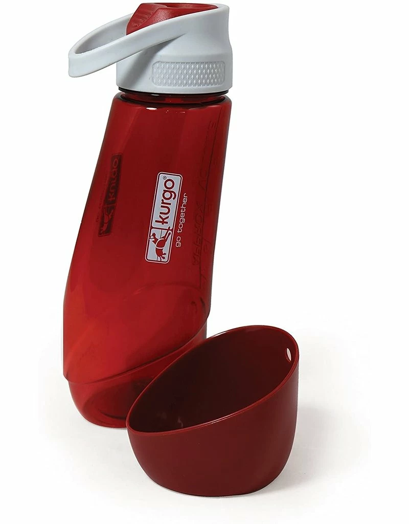 The ultimate in water bottles for on-the-go people with adventurous dogs. The main container brings water for both you and your dog. You drink from the top. You detach the bowl and pour water for your adventure companion. Great for walking, hiking, running, or traveling. No need to bring two water sources and no wasting water trying to pour it into your pup’s mouth.