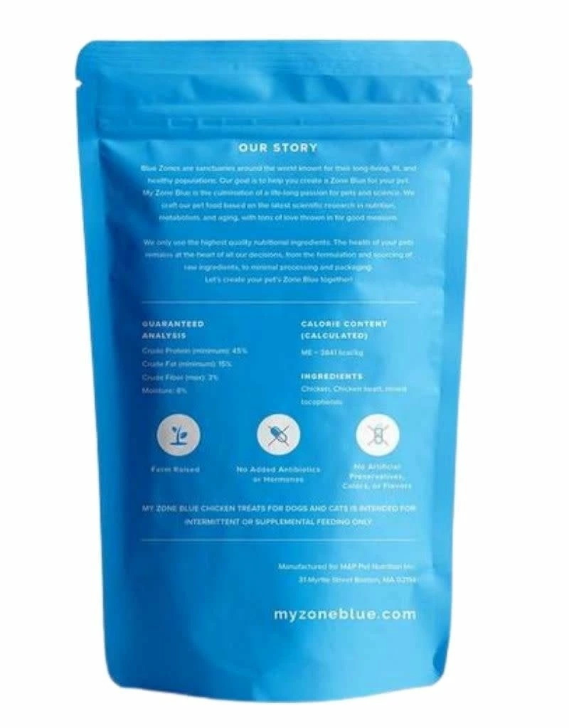 Raw, freeze-dried, soft and delicious treats. Chicken lovers’ favorite. Ideal for cats and small dogs. Only three ingredients, nothing artificial. A tender blend of free-range, humanely harvested chicken meat and hearts. Balanced levels of protein and calories.