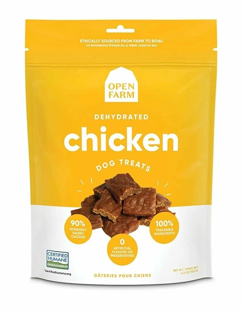 Train well and treat well. Open Farm Dog Dehydrated Chicken Treats are the ultimate reward made from 100% humanely raised chicken that’s lightly cooked and dehydrated at low temperatures for optimum taste. And they’re glycerine, grain, gluten, and antibiotic free.