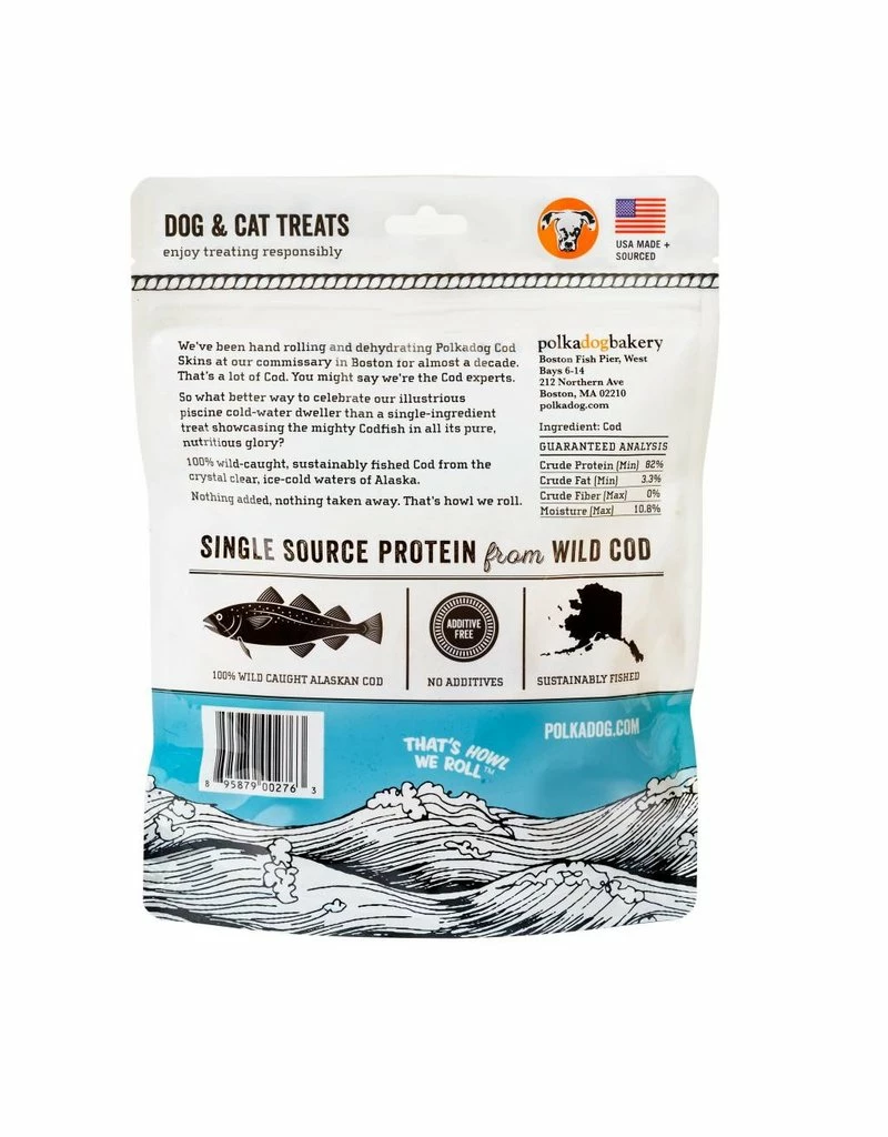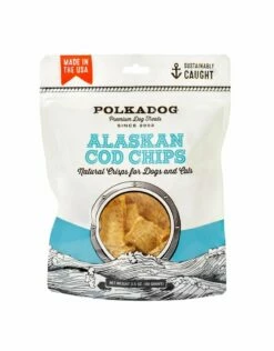 Polkadog’s Wild Cod Chips are hand made from 100% wild-caught, sustainably fished Cod from the pure, ice cold waters of Alaska. Slowly dehydrated, these highly palatable, single ingredient treats are perfect for dogs with protein sensitivities or those that love the surf side of surf and turf.