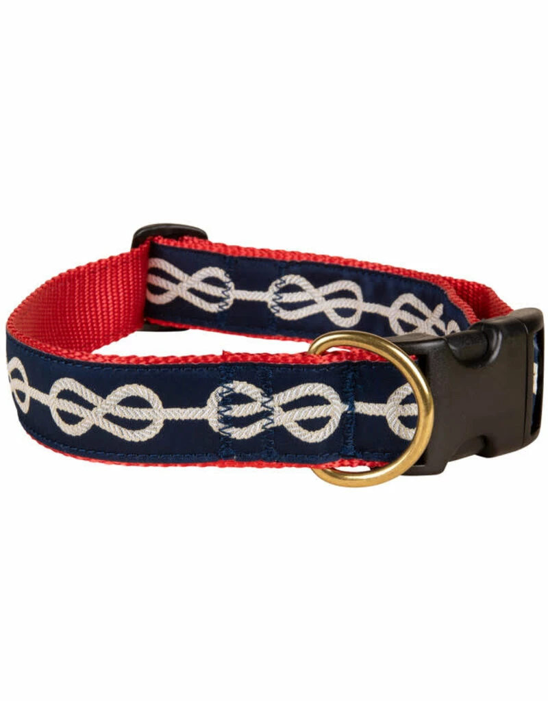 We build the dog collars with only materials we trust -like tough nylon webbing to avoid fraying, Wienerlock side-release buckles for safety, and cast brass rings to avoid rust and corrosion. Made in the USA.